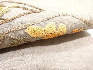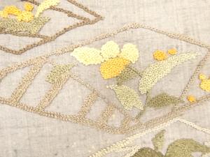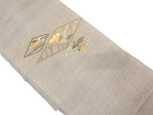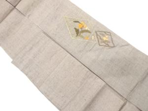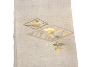 アンティーク 手織り紬 菱に草花模様刺繍名古屋帯