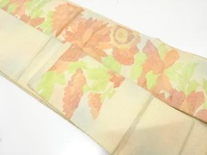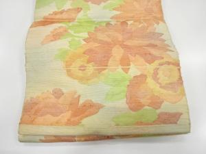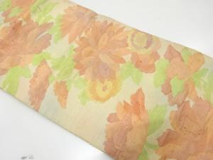 アンティーク 手織り紬 牡丹に菊模様織り出し名古屋帯