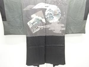 アンティーク 雪輪に金閣寺模様肩裏紋付羽二重男物羽織