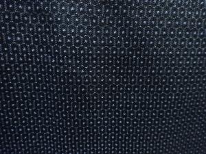 洗練された落ち着きのある色合いで、生地そのものは柔らかく、しわになりにくいと言われている。大島紬の特徴とも言える、織締めと呼ばれる技法で藍を用いて染められた糸を使用している。
