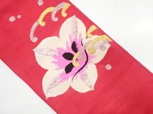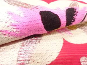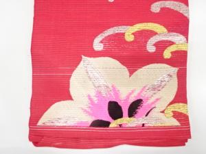 アンティーク 絽 荒波に百合模様織り出し名古屋帯