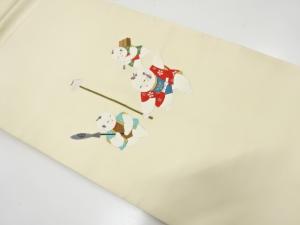 アンティーク 塩瀬 手描き 御所人形模様名古屋帯