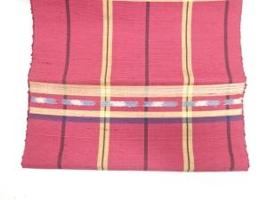アンティーク 手織り紬 格子模様織り出し 名古屋帯地反物