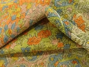 リサイクル 未使用品 縮緬地 草花に抽象模様小紋着物