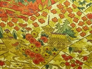 未使用品 切りばめ風 寺塔風景模様小紋着物
