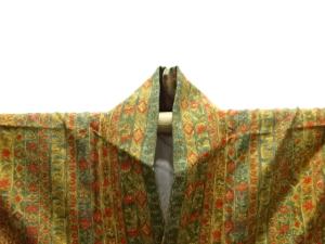 未使用品 縞に花更紗模様小紋着物