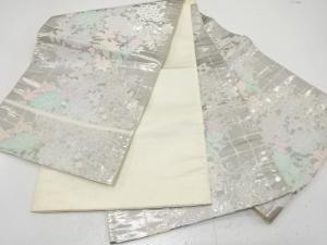 アンティーク プラチナ箔 花更紗模様織り出し袋帯(材料)