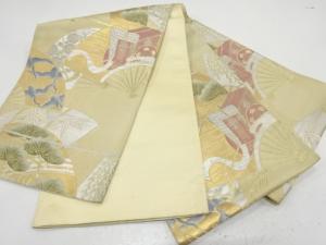 アンティーク 扇に御所車・鶴・松竹梅模様織り出し袋帯(材料)