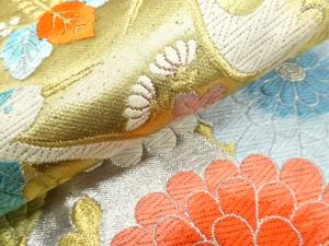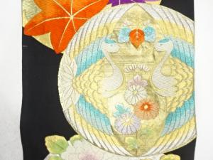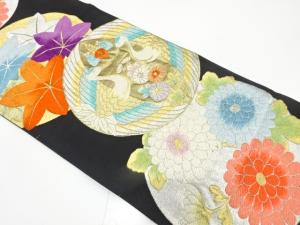アンティーク 向かい鶴に菊・楓模様織り出し袋帯(材料)
