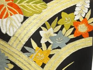 アンティーク 山並に桐・菊・桔梗模様織り出し袋帯(材料)