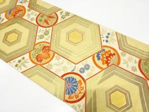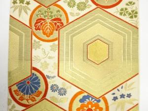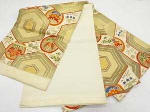 アンティーク 亀甲に草花模様織り出し袋帯(材料)