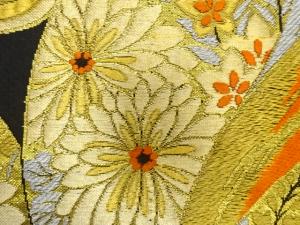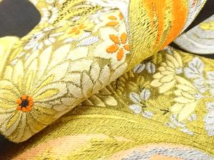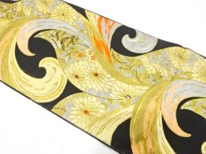 アンティーク 唐草に菊・秋草模様織り出し袋帯(材料)