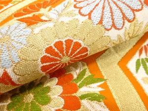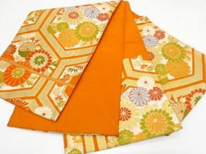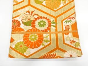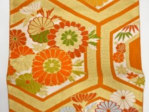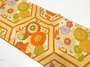 アンティーク 亀甲に菊模様織り出し袋帯(着用可)