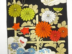 アンティーク 雲に菊・桔梗模様織り出し袋帯(材料)