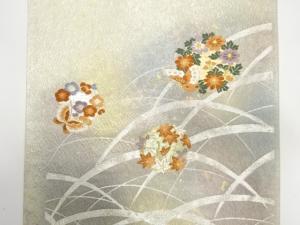 アンティーク 芝草に花丸・蝶模様織り出し袋帯(材料)