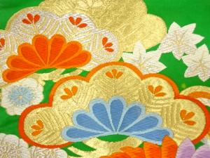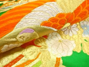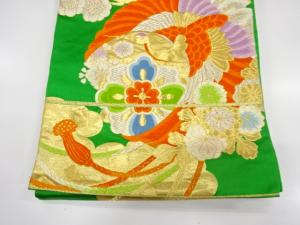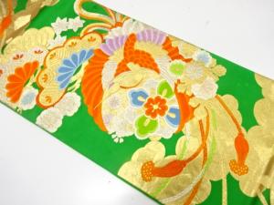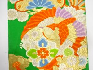 アンティーク 鶴に花車・笠松模様織り出し袋帯(材料)