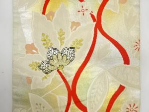 アンティーク よろけ縞に唐花模様織り出し名古屋帯(着用可)