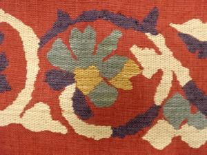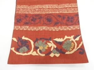 アンティーク 横段に花唐草模様織り出し紬名古屋帯(着用可)