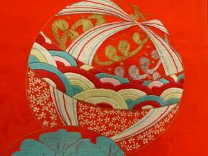 太鼓部分裏面と手先〜71センチ表裏は別布の紋錦紗です。
