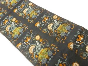 アンティーク 花器に花唐草模様織出し名古屋帯(材料)