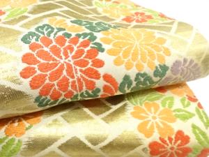 アンティーク 桧垣に花丸模様織り出し名古屋帯(材料)