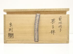 上野良樹造 藍地硝子菓子鉢(共箱)