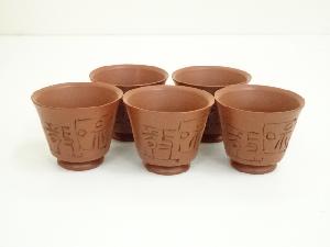 常滑焼 作家物 朱泥和敬彫煎茶器揃(共箱)