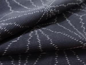 洗練された落ち着きのある色合いで、生地そのものは柔らかく、しわになりにくいと言われている。大島紬の特徴とも言える、織締めと呼ばれる技法で藍を用いて染められた糸を使用している。