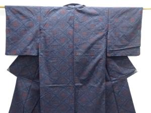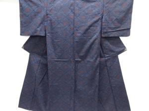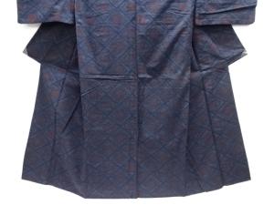 幾何学模様織り出し本真綿結城紬単衣着物
