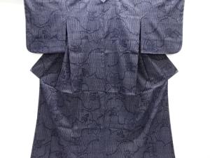 未使用品 重要無形文化財本場結城紬80亀甲 葉模様織り出し着物