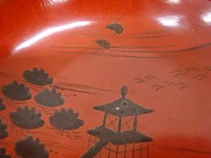 朱漆塗 黒絵盃
