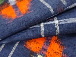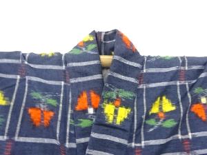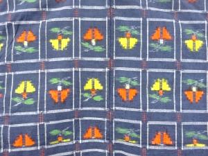 リサイクル 変わり格子に抽象花模様織り出し手織り真綿紬着物