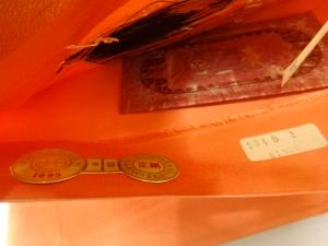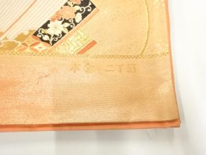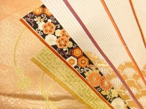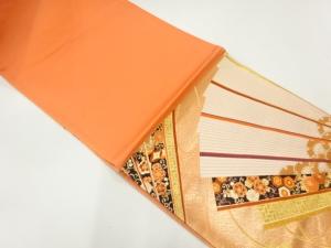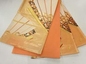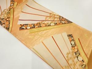 未使用品 本金箔二丁箔檜扇模様織出し袋帯