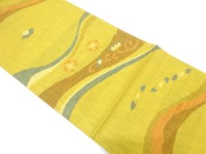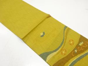 未使用品 金通し 山並に花唐草模様織り出し 袋帯