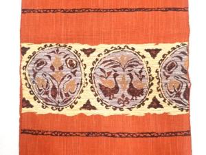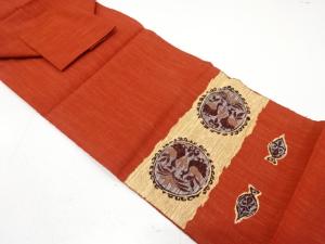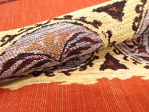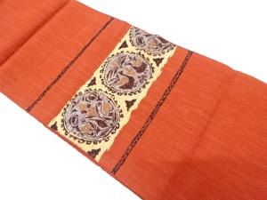 アンティーク 横段に向かい鳥・花更紗模様織り出し名古屋帯(着用可)