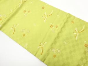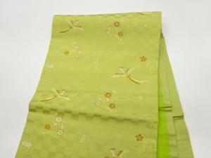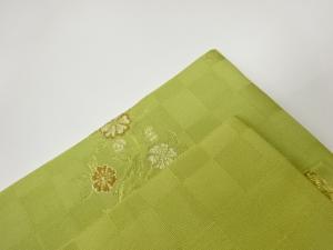 市松に花鳥模様織出し開き名古屋帯(額縁仕立て)