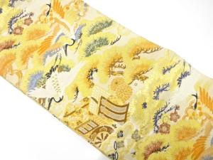アンティーク 鶴に御所車・松・梅模様織り出し丸帯(材料)