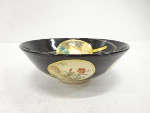 京焼 橋本城岳造 倣黒仁清 団扇文 茶碗