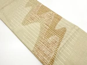 作家物 ふくれ織抽象流水に縞模様開き名古屋帯(額縁仕立て)