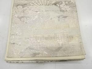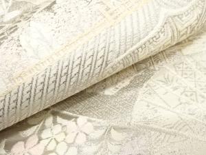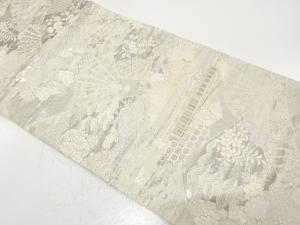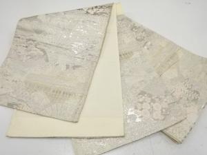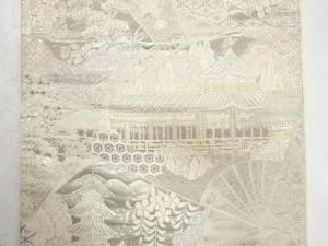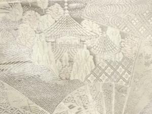 アンティーク 扇に京風景・草花模様織り出し袋帯(材料)