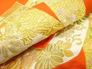 アンティーク 束ね熨斗に草花模様織り出し袋帯(材料)