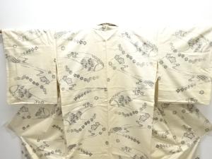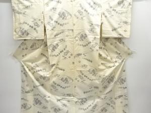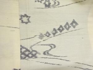 アンティーク 流水に草花模様織出し手織り紬着物
