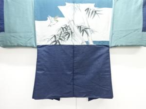 アンティーク 竹笹に雀模様肩裏手織り紬男物羽織