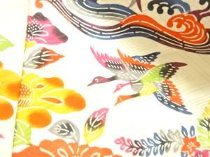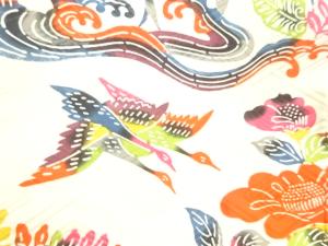 本場琉球紅型流水に花鳥模様振袖