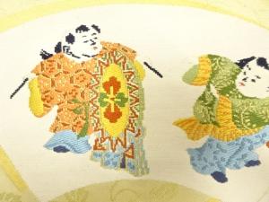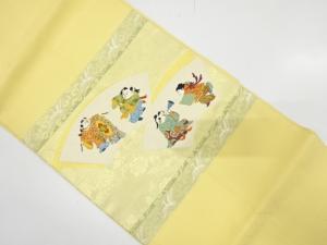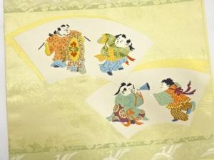 アンティーク 地紙に御所人形・草花模様織り出し名古屋帯