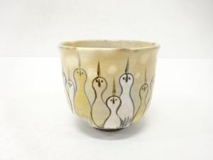 作家物 金彩色絵 立鶴 茶碗