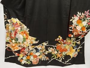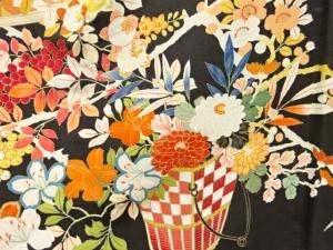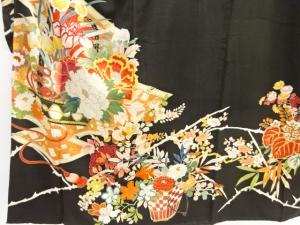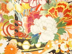 大正ロマン 錦紗松皮菱に草花模様五つ紋花嫁衣装振袖