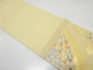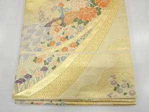 未使用品 束ね熨斗に牡丹・孔雀・菊模様織り出し 袋帯
