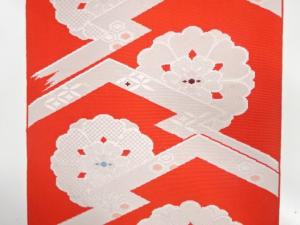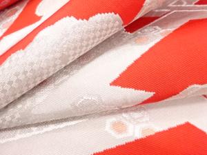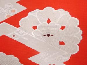 アンティーク 松皮菱に花模様織り出し 八寸帯地反物