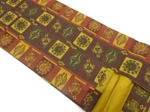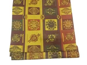未使用品 藤原純一作 草木染 縞に向かい蝶・華紋織り出し 名古屋帯
